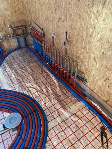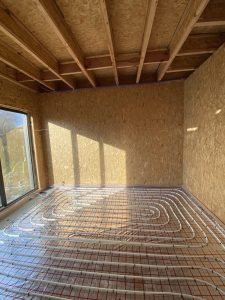 Перед початком проектування було виконано детальний теплотехнічний розрахунок для визначення тепловтрат і теплонадходжень будинку. За його результатами основним джерелом опалення та охолодження обрано тепловий насос “повітря-вода” Viessmann Vitocal 200 S із буферною ємністю для нагріву гарячої води об’ємом 200 літрів.